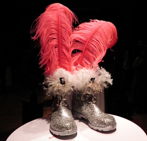Surprisingly, there weren’t many of the artists themselves present to support their work. I was, however, lucky enough to meet Tracy O’Brien, creator of the pink Barbie piece, which she designed complete with Barbie shoe-mobile. I love that Tracy wore matching pink nail polish, although I’m unsure if this was planned or not! She spoke about her passion for fashion and her desire to delve into that sector in the near future. I certainly hope so, as the world needs more pink fabulousness I’m unsure whether Adam is an artist, but if not, he ought to be. Completely different from the rest, rather than add embellishments, he took an expressive route using the Blundstone boot in its raw form. Adam explains, “Boots: You wear them when you need to get things done. For practical work, or a commanding appearance, a boot will give you what a shoe can’t. These boots are large and most definitely in charge.”